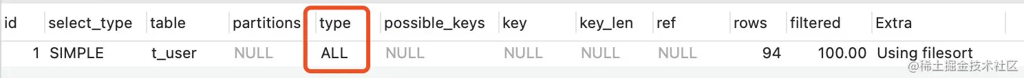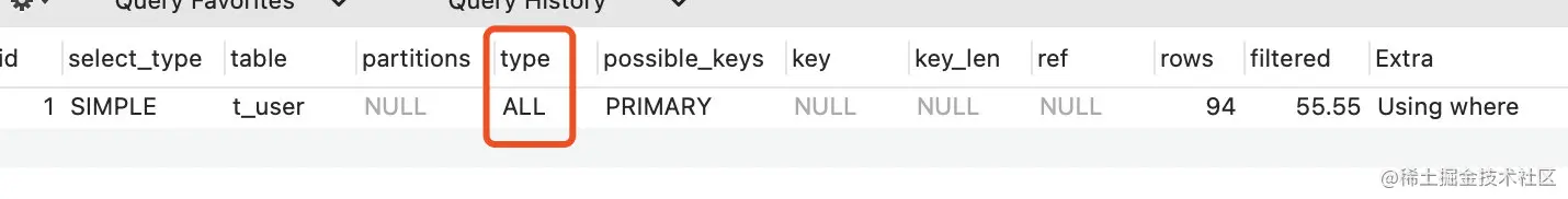 此时,进行了全表扫描。这也是最开始提到的奇怪的现象。