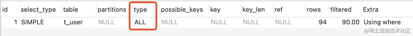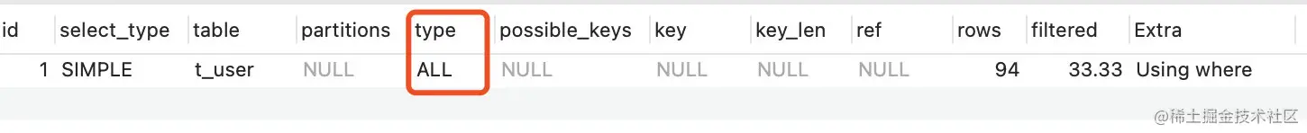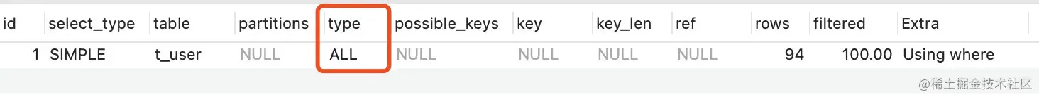 explain select * from t_user where create_time != '2022-02-27 09:56:42';
