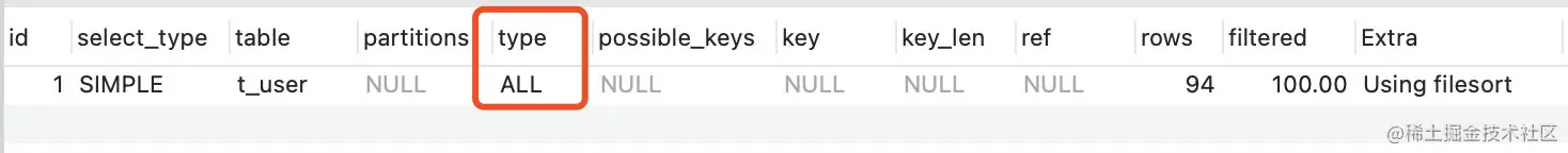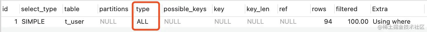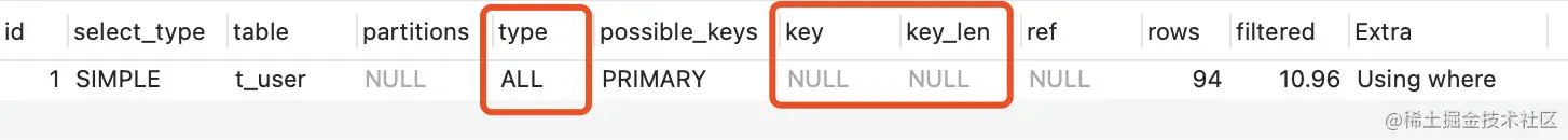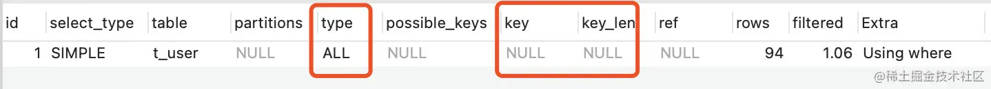 此时,可以看到未走任何索引,也就是说索引失效了。