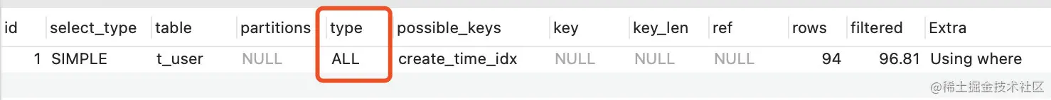 explain select * from t_user where create_time > '2022-02-27 09:04:23';