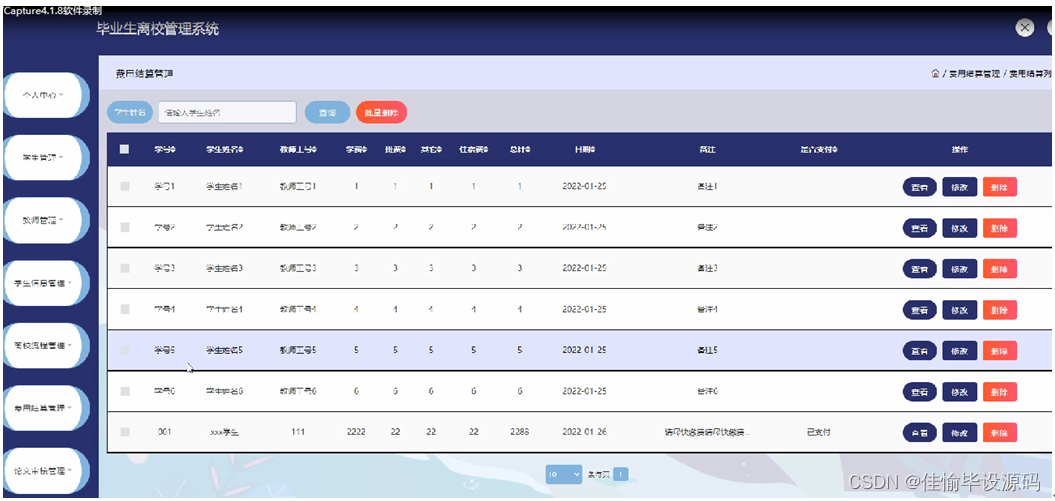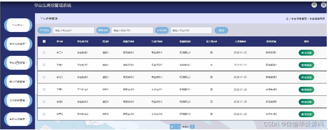 本系统为毕业生提供离校流程管理、费用结算等功能,支持学生、教师及管理员不同角色的操作需求。