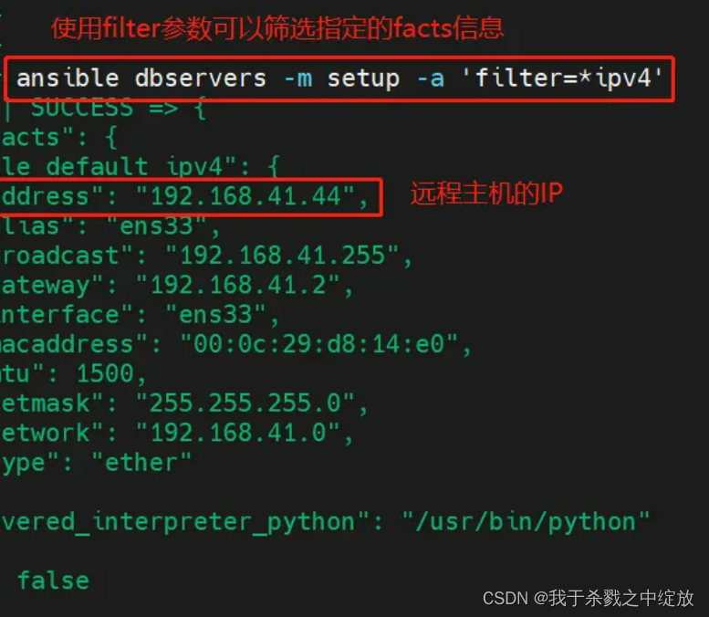 ansible dbservers -m setup -a 'filter=*ipv4'