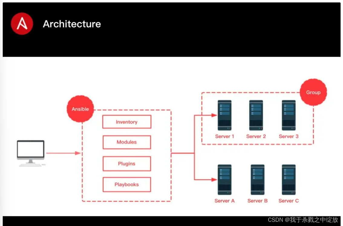 Ansible其中一个比较鲜明的特性Agentless,即无Agent的存在(无代理端,即无客户端),它就像普通命令一样, 并非c/s软件,也只需在某个作为控制节点的主机上安装一次Ansible即可,通常它基于ssh连接来控制远程主机,远程主机上不需要安装Ansible或其它额外的服务。