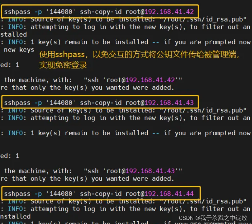 sshpass -p '144080' ssh-copy-id root@192.168.41.44