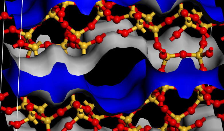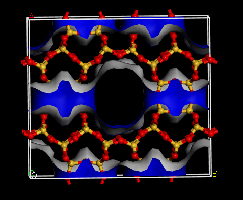 本例子是计算沸石的Connolly表面。在沸石结构中有很多等位面,但是沸石不能直接像苯环那样计算出来,因为苯环是分子结构,不是晶体结构,但是向金属等晶体结构不能直接计算出来。