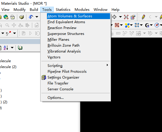 首先点击Tools选项栏中的Atom Volumes&Surfaces: