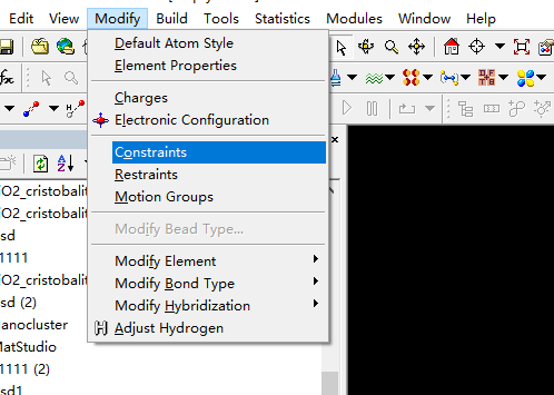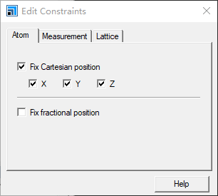 然后打开石墨烯的模型,与上一个示例相同,首先选中石墨烯,点击Build选项栏中Constraints,将Fix Cartesian position勾选上: