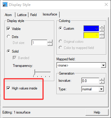 再次点击鼠标右键,点击Display Style,然后选择Isosurface,勾选High Values inside:
