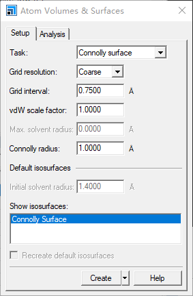 然后点击Tools选项栏中Atom Volums&Surfaces,进入下面的界面: