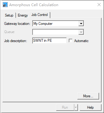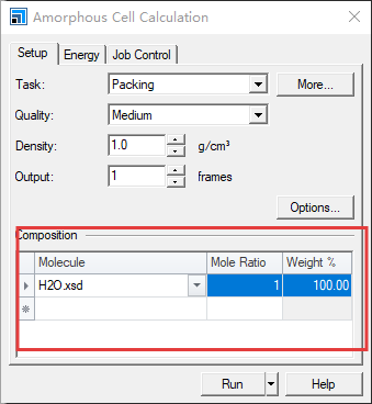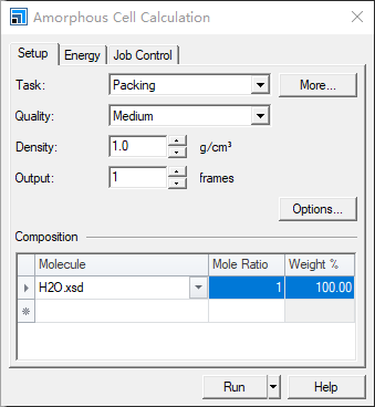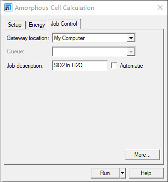 然后将上面选项栏点击Job Control,这里命名为SiO2 in H2O: