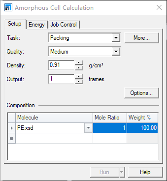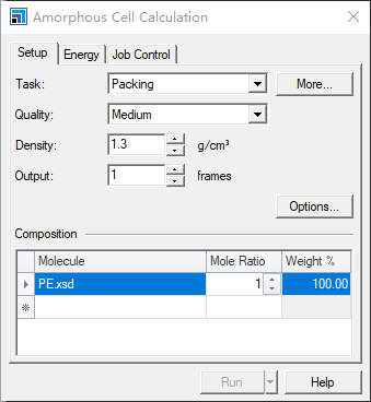 然后将密度设置为,并且在Composition选中PE(PE是聚乙烯的xsd文件名),如下所示: