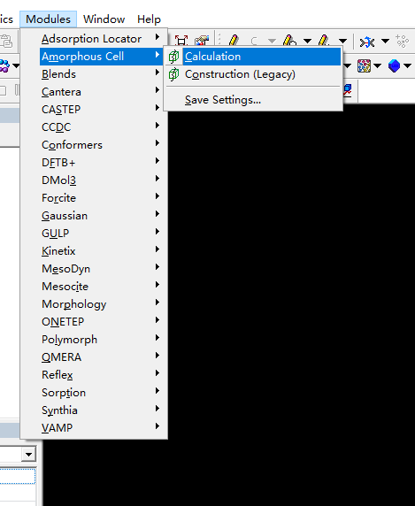 点击Modules选项栏中Amorphous Cell中的Amrophous Cell中的Calculation: