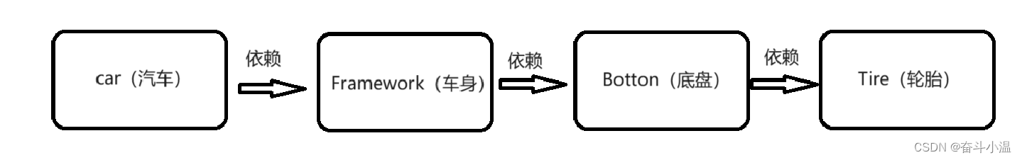 在运行 Car 时,动态的将 Framework 拿到当前类中的过程就叫做 依赖注入 (在运行类的时候,需要有一个依赖类,依赖类就会从容器中动态的查询出来,赋值给变量,就可以直接使用这个方法)