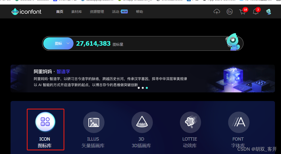 搜索阿里图标库,或者点击链接https://www.iconfont.cn/,点击icon图标库