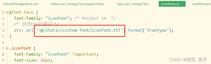 解压文件,放到项目中static文件下,修改iconfont.css文件中iconfont.ttf的路径