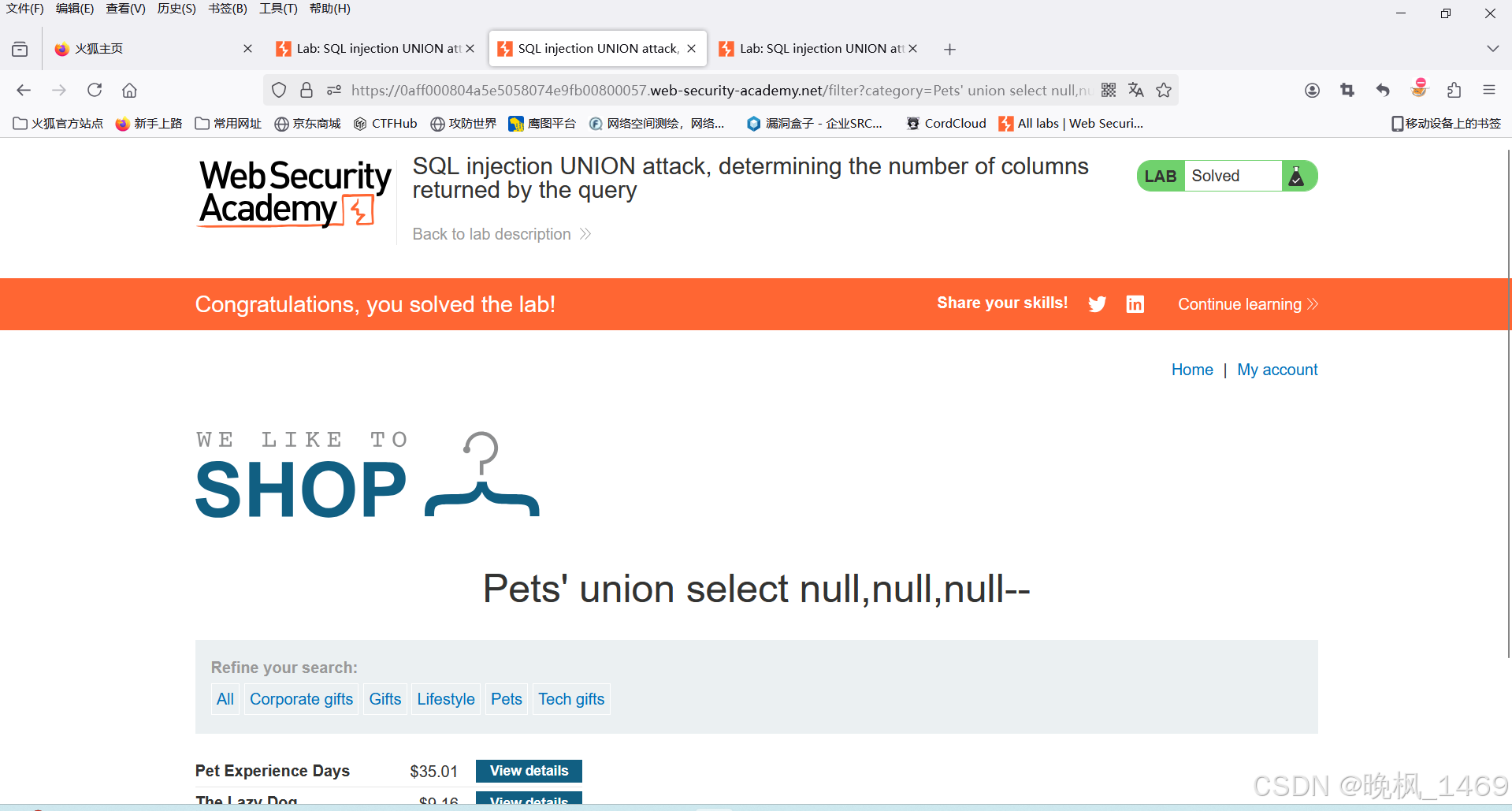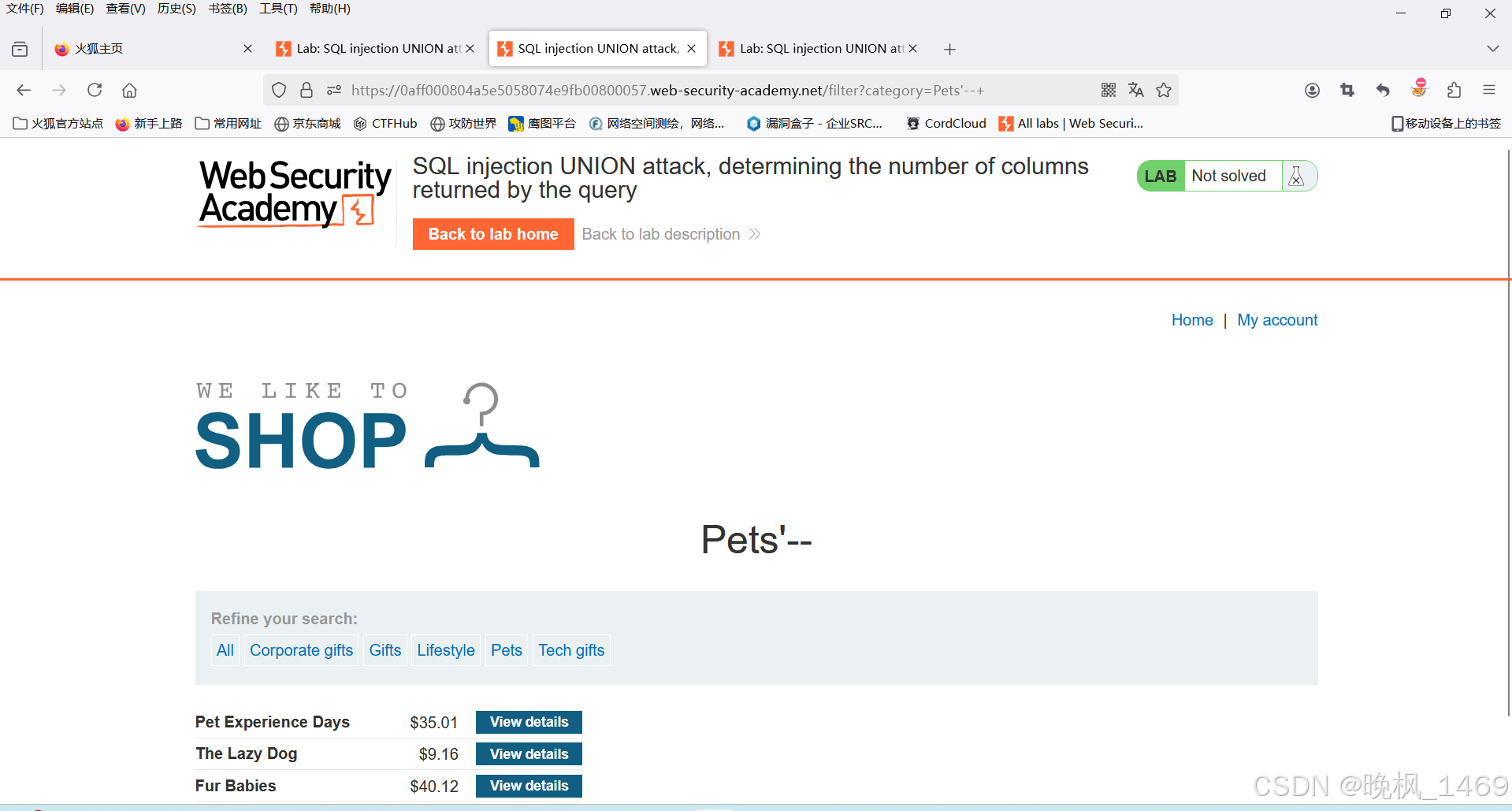 传送门:https://portswigger.net/web-security/sql-injection/union-attacks/lab-determine-number-of-columns