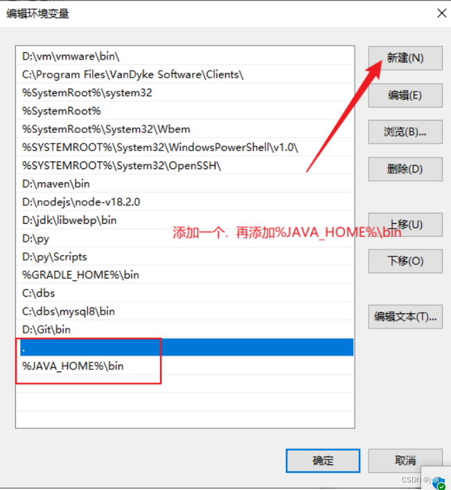 5.点击系统变量下的新建添加JAVA_HOME 和 CLASSPATH 变量