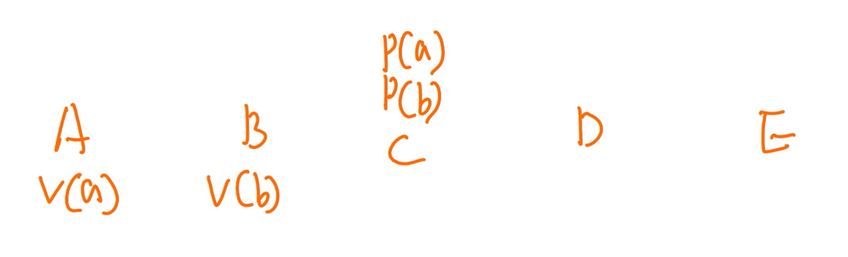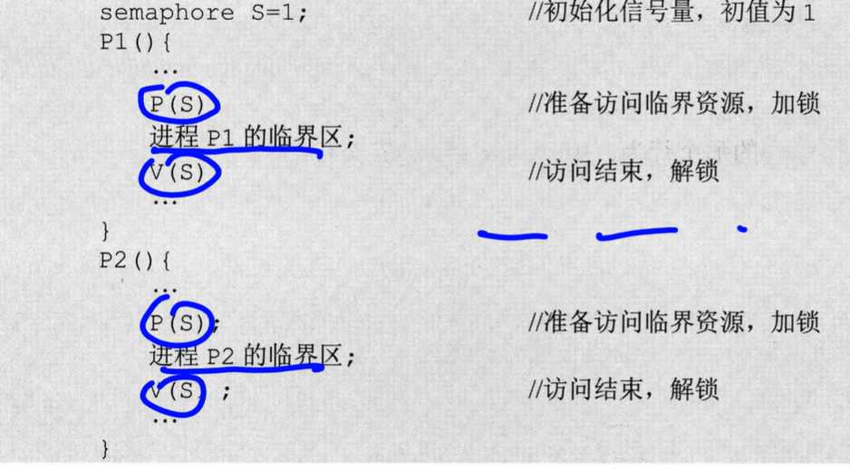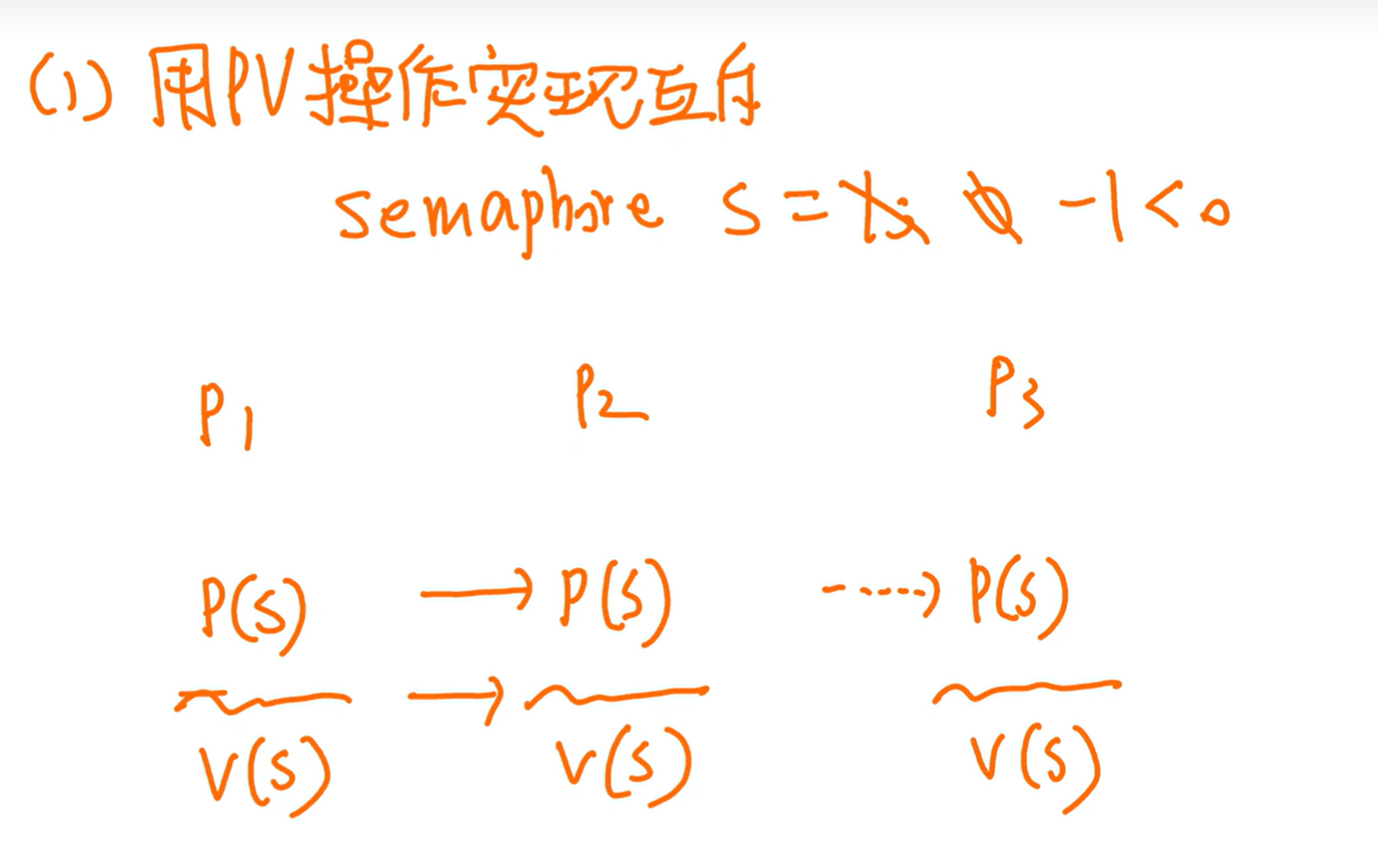 那个波浪线是临界资源,想要让它互斥,你就得在上下设置一个PV