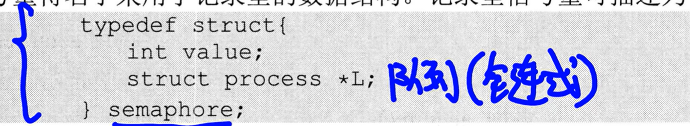 用链表实现的队列,重命名为semaphore,记录型信号量就是除了整数,还有一个队列