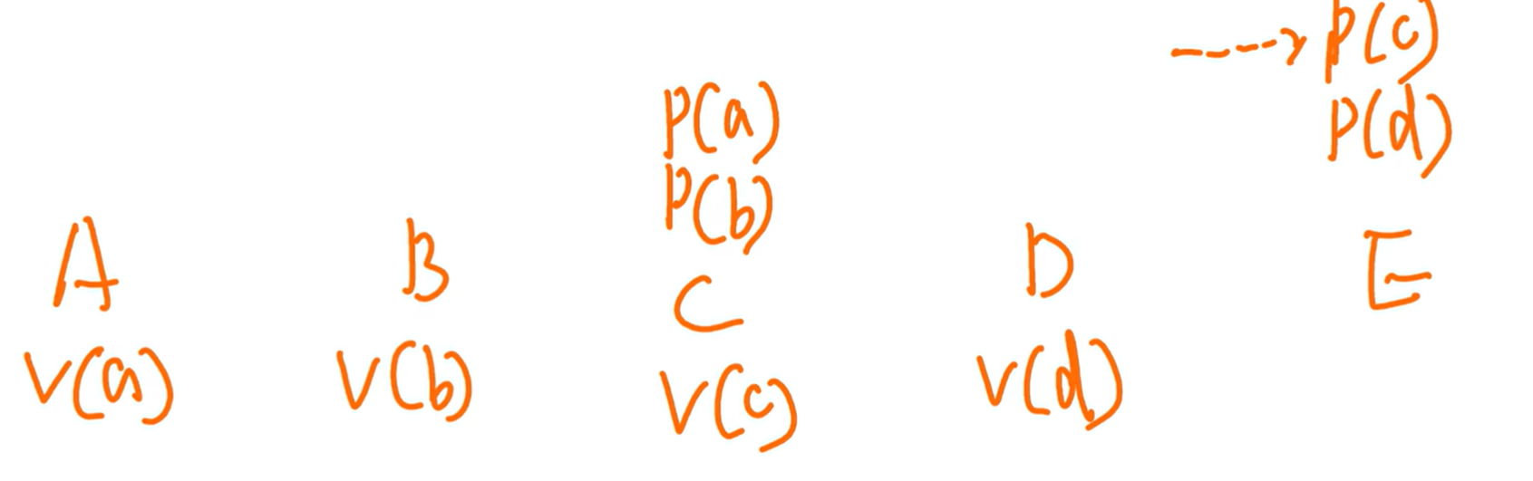 这时候P3错过了风口,但也想执行,进入了P3的P(S)发现减1后是<0的了,此时你就等吧,你就加入0人在意的队列吧