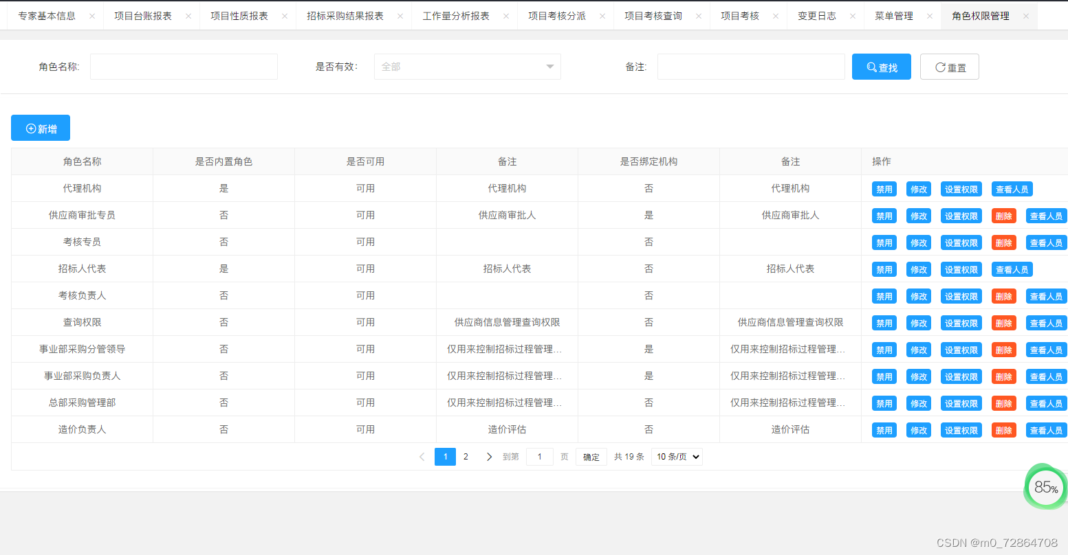 11、基础数据管理:对支持系统使用过程中需要用到的基础数据维护及管理。主要功能包含:公告模板管理、评审人员管理、第三方机构管理、供应商管理、采购类别设置、评审模板管理、考核模板管理。