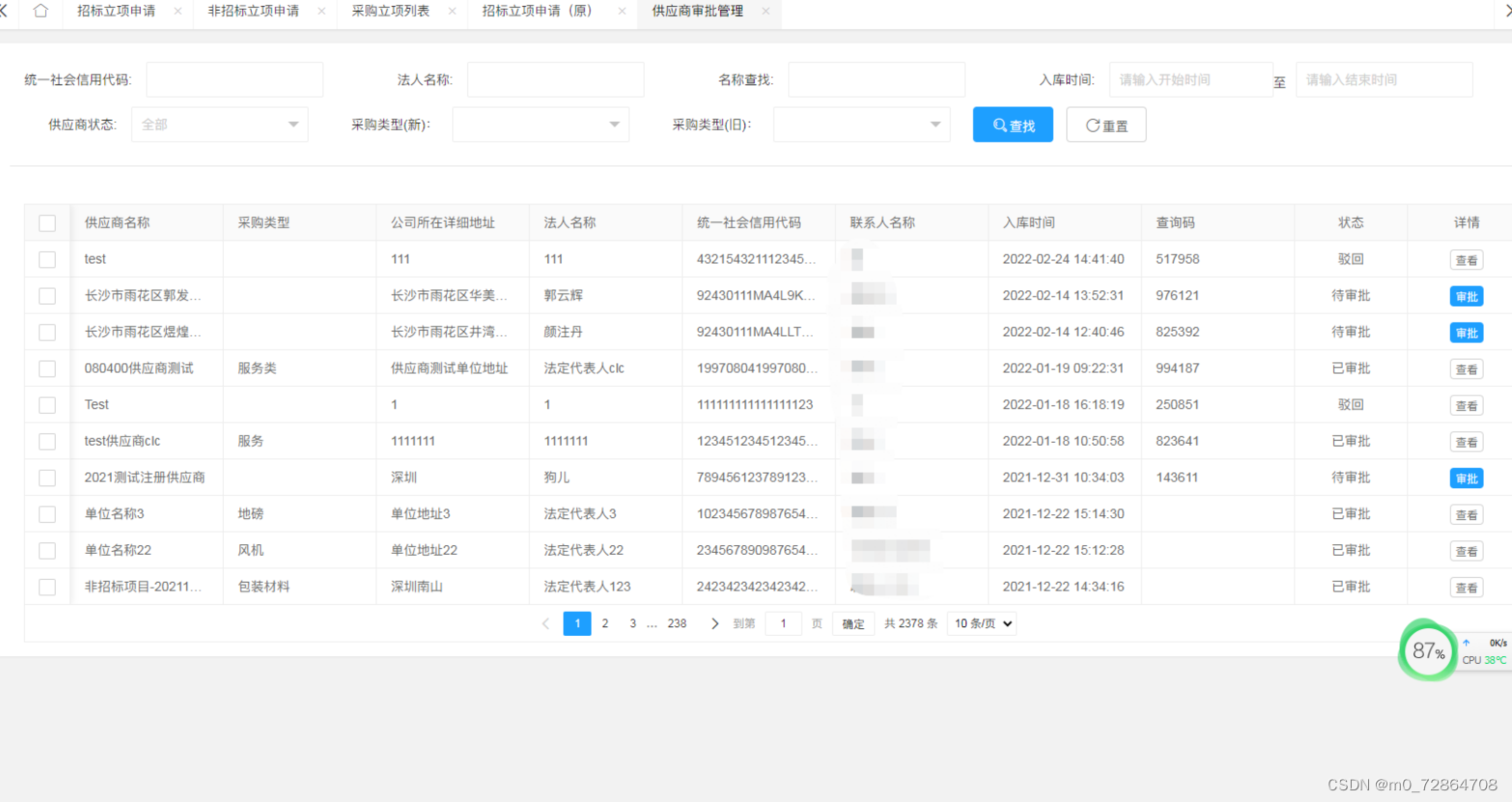 招标面向的对象为供应商库中所有符合招标要求的供应商,当库中的供应商有一定积累的时候,会节省大量引入新供应商的时间。系统自动从供应商库中筛选符合招标要求的供应商,改变以往邀标的业务模式。招采工作完成对供应商进行评分,对不合格供应商进行拉黑;供应商报名、缴费以及投标、答疑等过程通过系统自助完成。以往线下存档资料管理困难,回溯项目过程不清晰,回溯过程复杂,现在通过线上存档的方式,存档方便,可以快捷高效的对以往招采项目进行回溯。