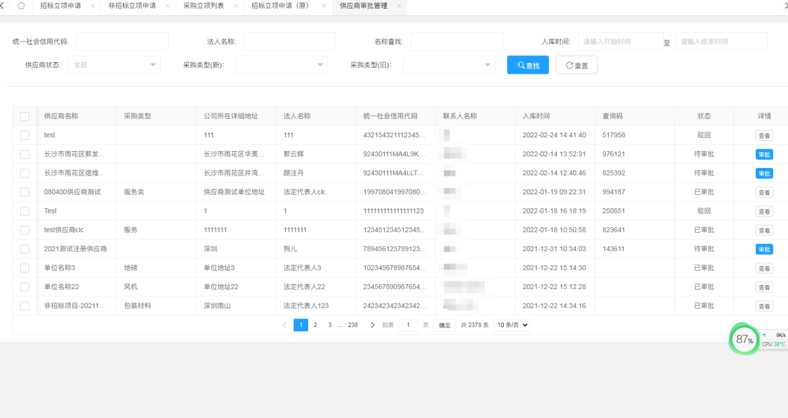 7、评审管理:对采购过程中所有需要评审的项目进行评审管理。