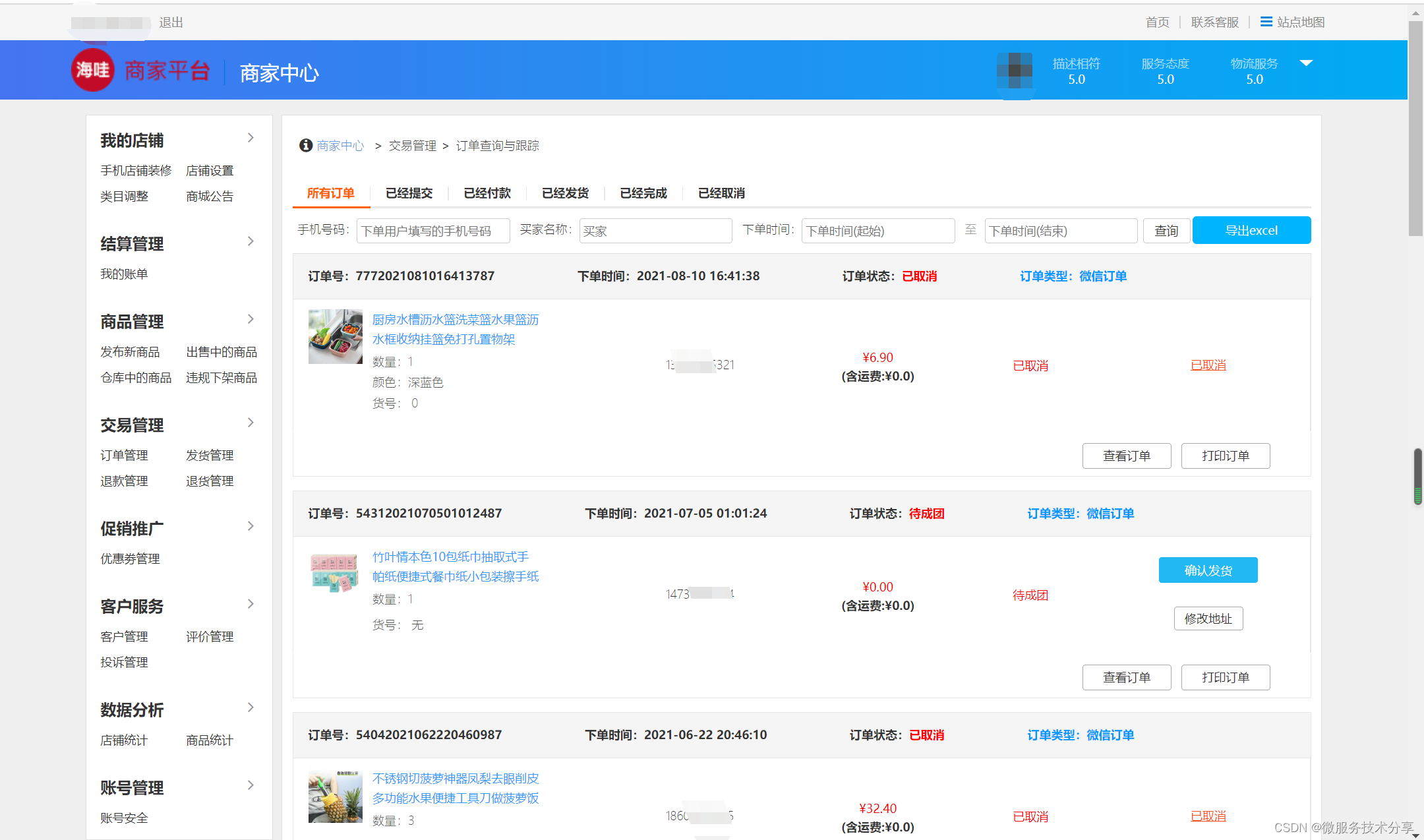 平台管理、商家端(PC端、手机端)、买家平台(H5/公众号、小程序、APP端(IOS/Android)、微服务平台(业务服务)