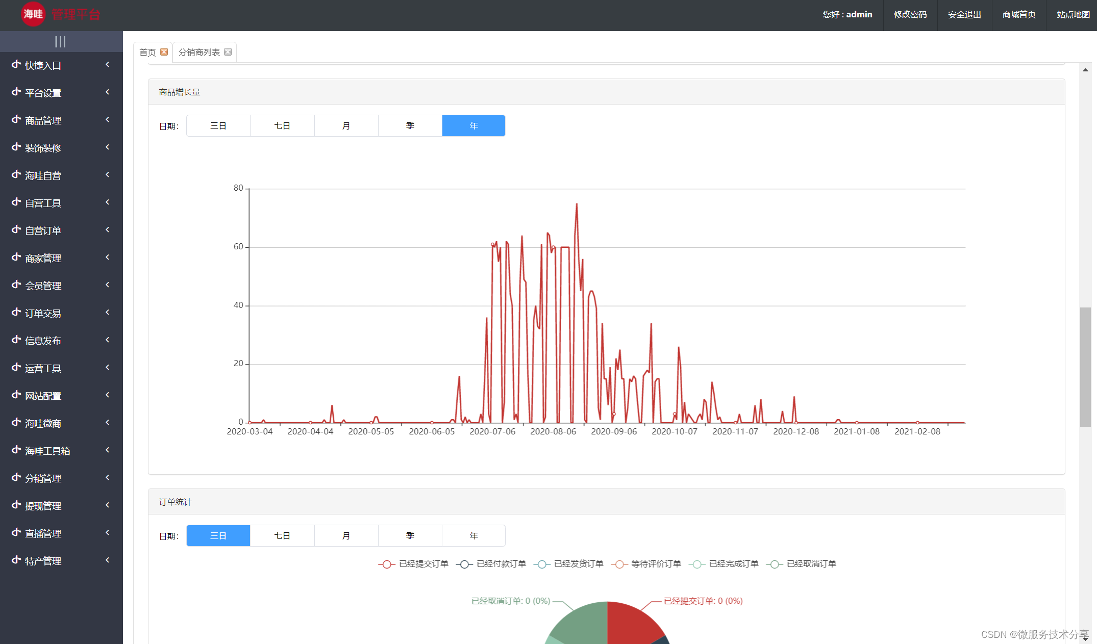 平台管理、商家端(PC端、手机端)、买家平台(H5/公众号、小程序、APP端(IOS/Android)、微服务平台(业务服务)