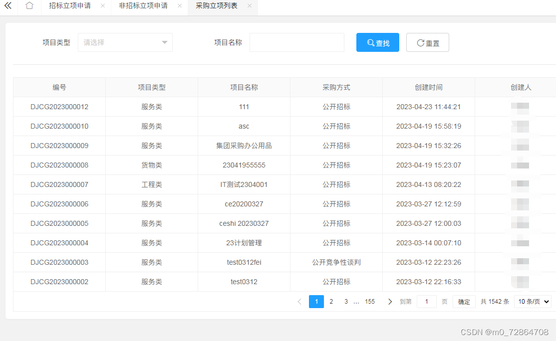 功能点:招标类项目立项申请入口,用户可以保存为草稿,提交。