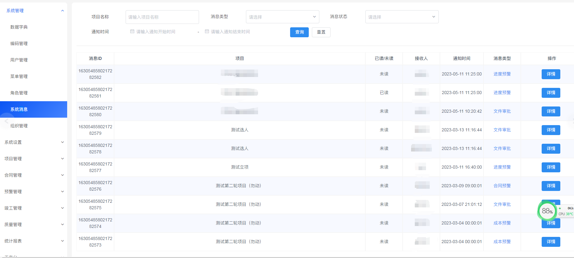 1、项目汇总:项目汇总信息查看,包括进度、计划时间等信息