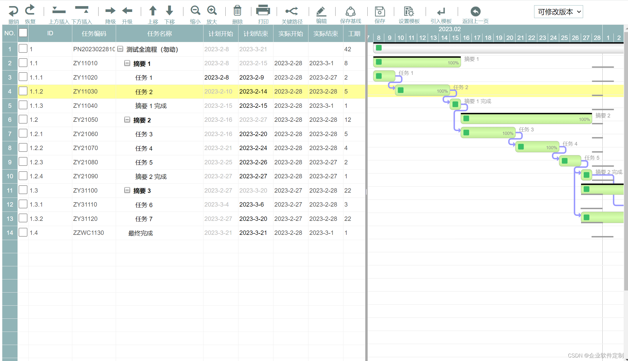 2、项目计划管理:项目计划查看和管理模块,可执行增删改查操作,包括查看甘特图