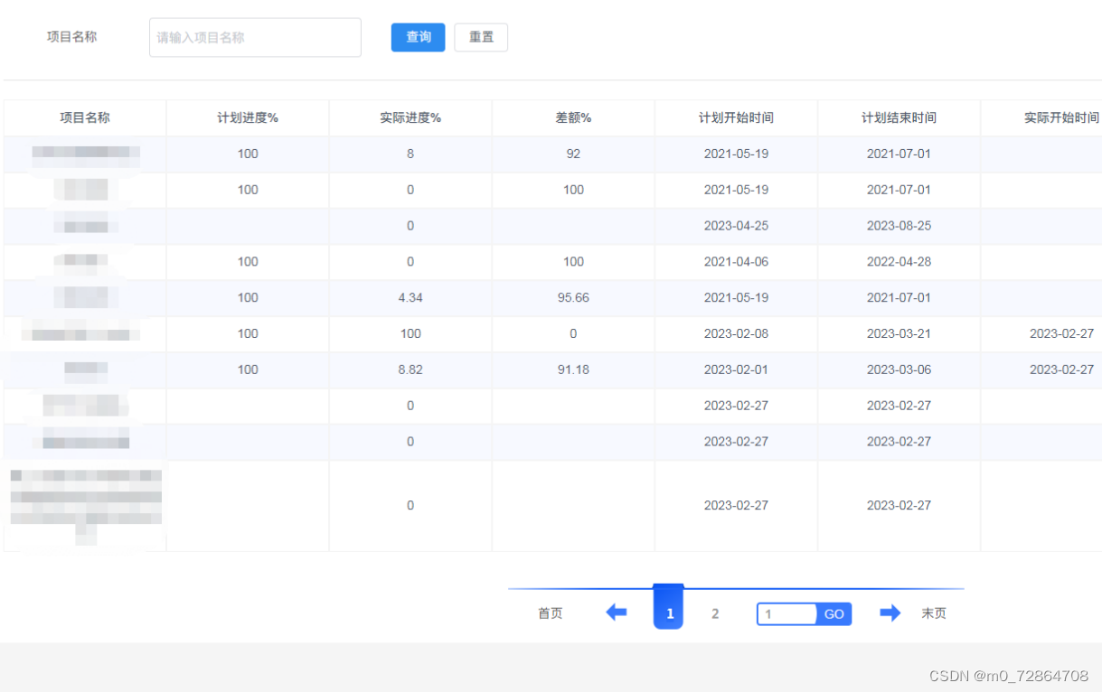 1、项目汇总:项目汇总信息查看,包括进度、计划时间等信息