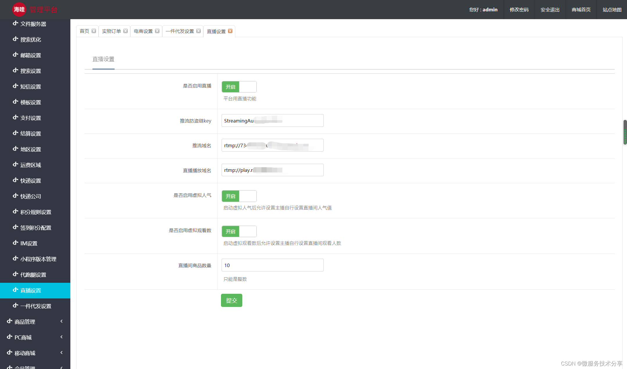 直播、短视频带货版本(标准多商户入驻+直播、短视频带货+二级分销体系+满减、满送、优惠券、组合销售、平台礼包等营销活动)