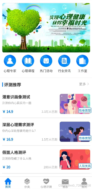 在这个快节奏、高压力的时代,每个人的心灵都承载着不为人知的重量。我们深知,在纷扰中寻找内心的平静与力量,是每个人不可或缺的心灵之旅。为此,经过无数个日夜的精心研发与打磨,一款集在线心理测评、专业心理咨询、个性化心理培训于一体的小程序终于横空出世,它不仅仅是一个工具,更是您心灵深处的温暖港湾。