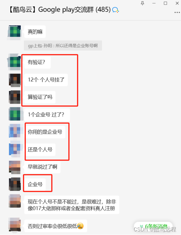 因此,开发者们为了应对谷歌的风控,在不断测试寻找方法,以提高上包成功率。近期,在酷鸟云的Google play交流群中,很多开发者表示,企业开发者账号要比个人开发者账号的上包成功率更高。