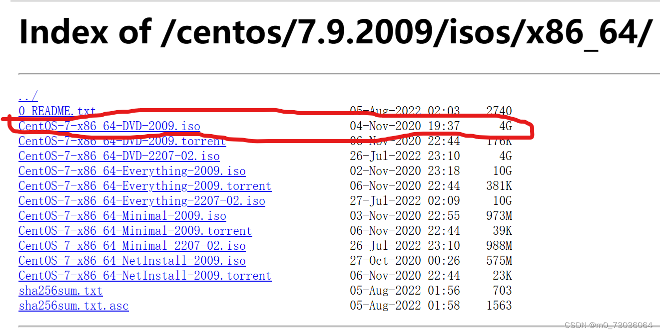最后附上Linux映像文件的下载链接:Index of /centos/7.9.2009/isos/x86_64/