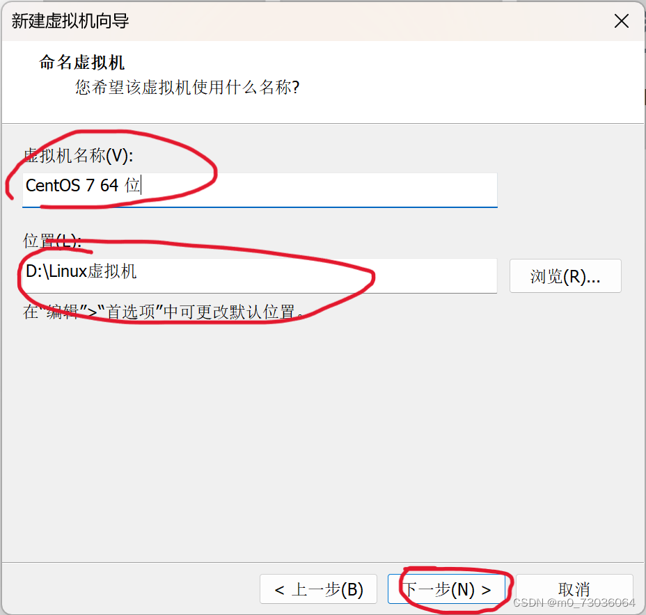 这里编辑好自己喜欢的虚拟机的名字和地址。