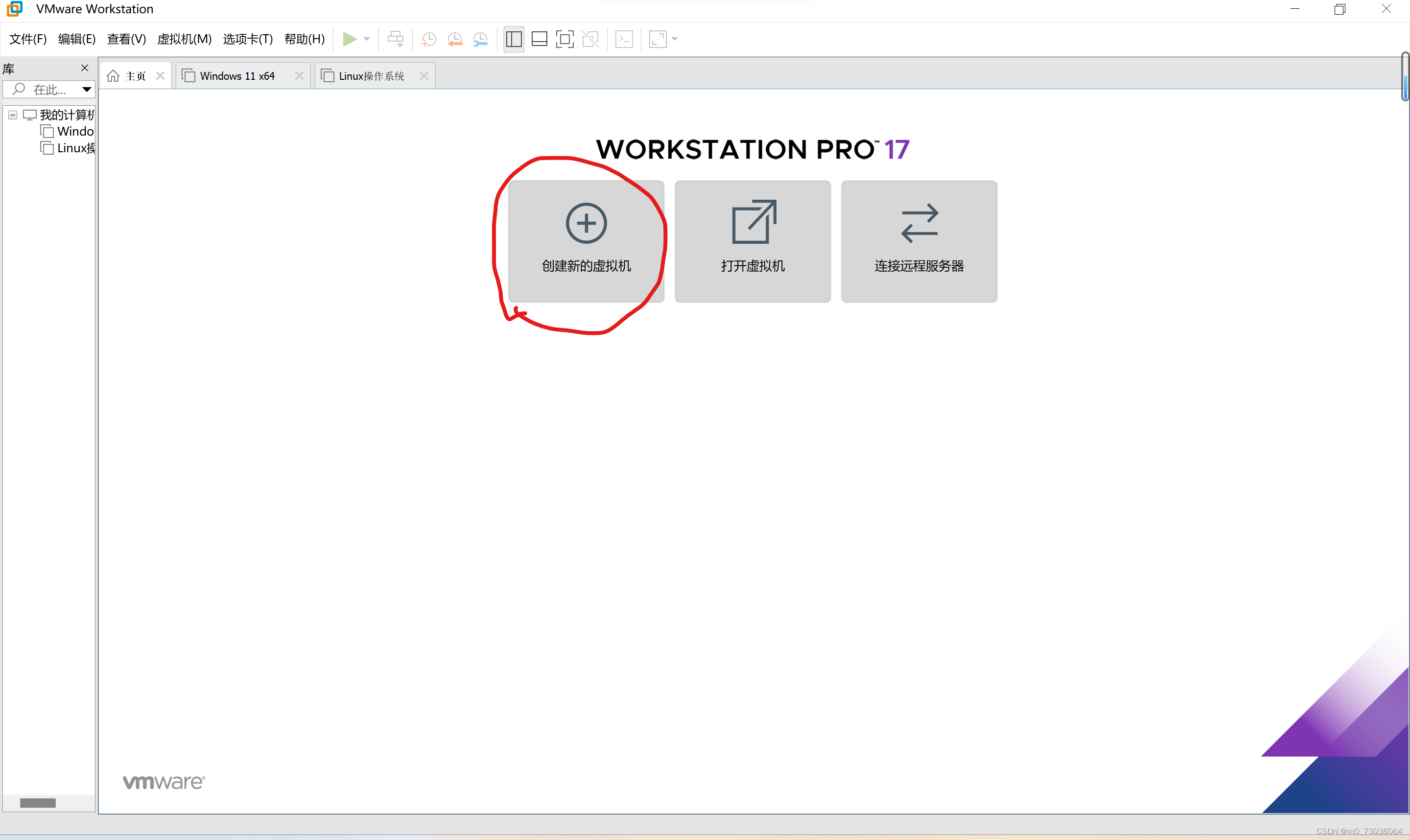 之后打开VMware17,一般安装的时候会在桌面建立一个图标,可以在那里进入。