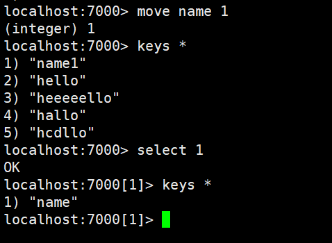 语法 : MOVE key db (move name 1----将name键移动到1号库)