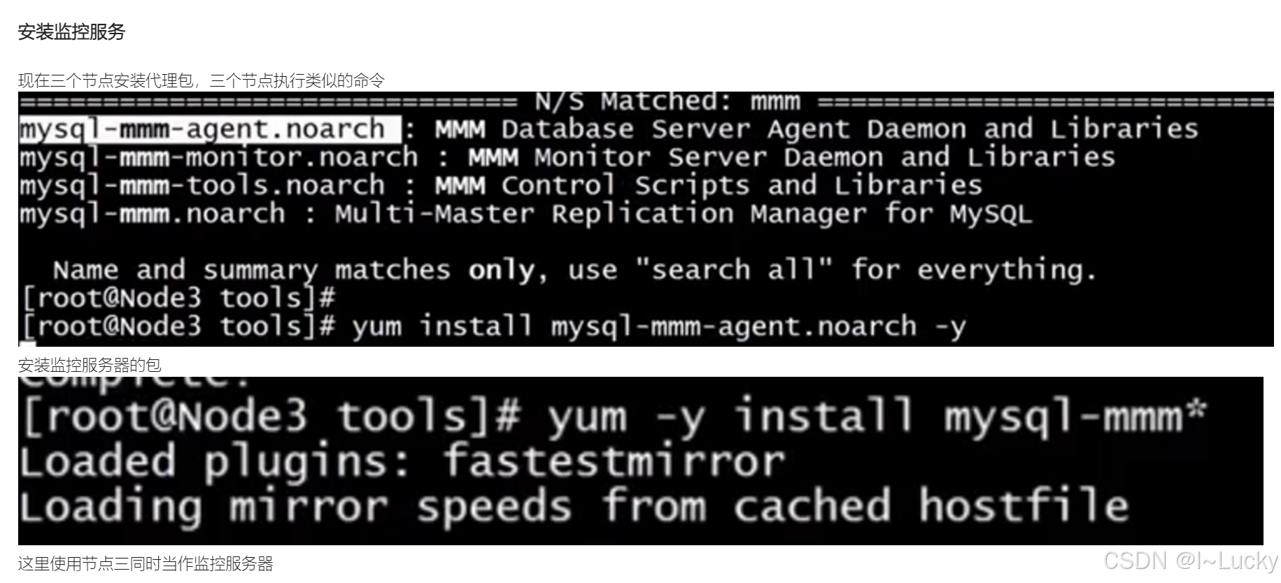 安装MMM包:安装MMM的代理包和监控包。
