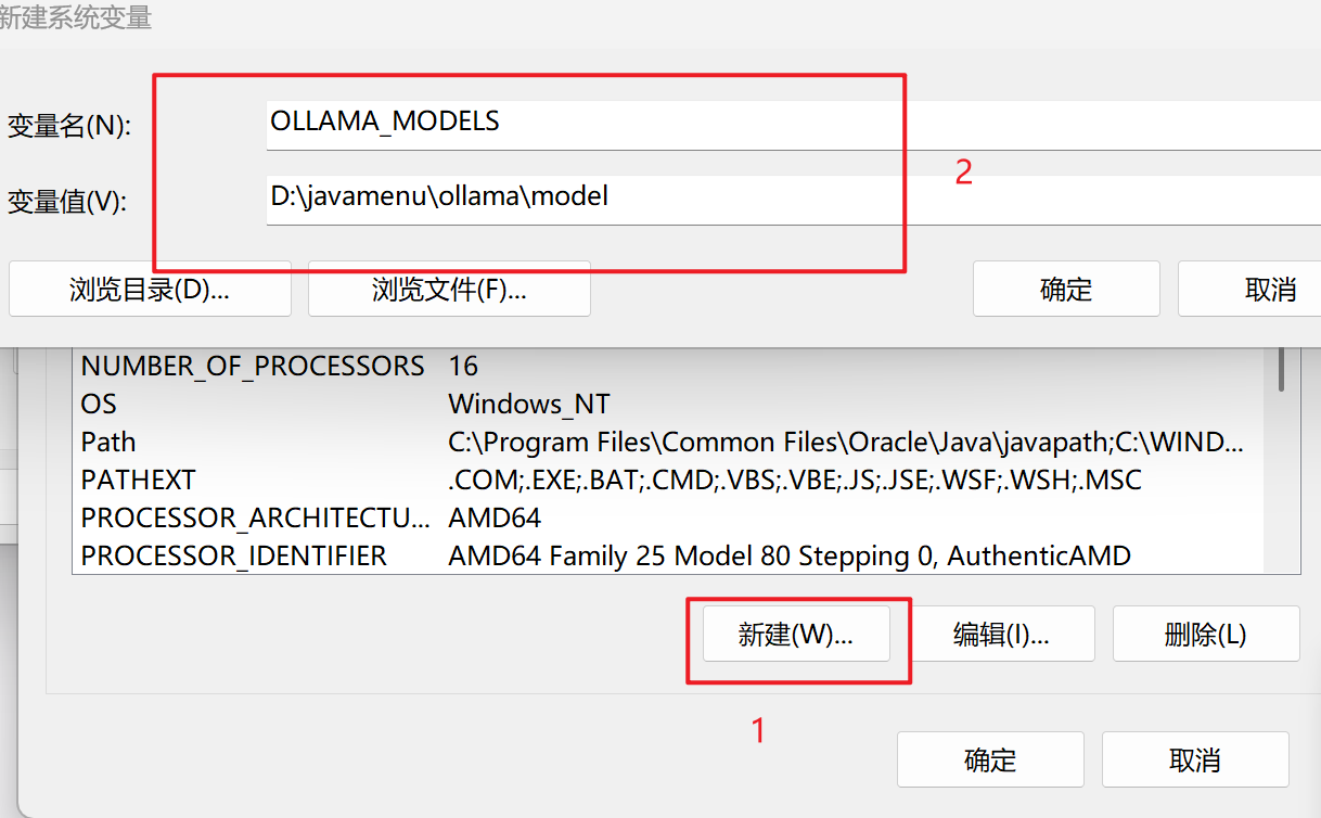 此时如果想要设置大模型下载的目录,需要在环境变量里面指定对应位置,不要有中文,指定完系统环境变量之后如果不行可以尝试重启