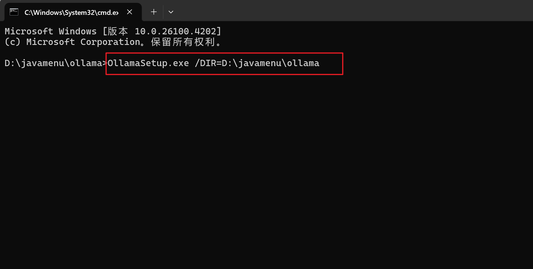 运行当前目录下的ollama安装文件,然后通过 /DIR="安装路径",指定你想要安装的ollama路径