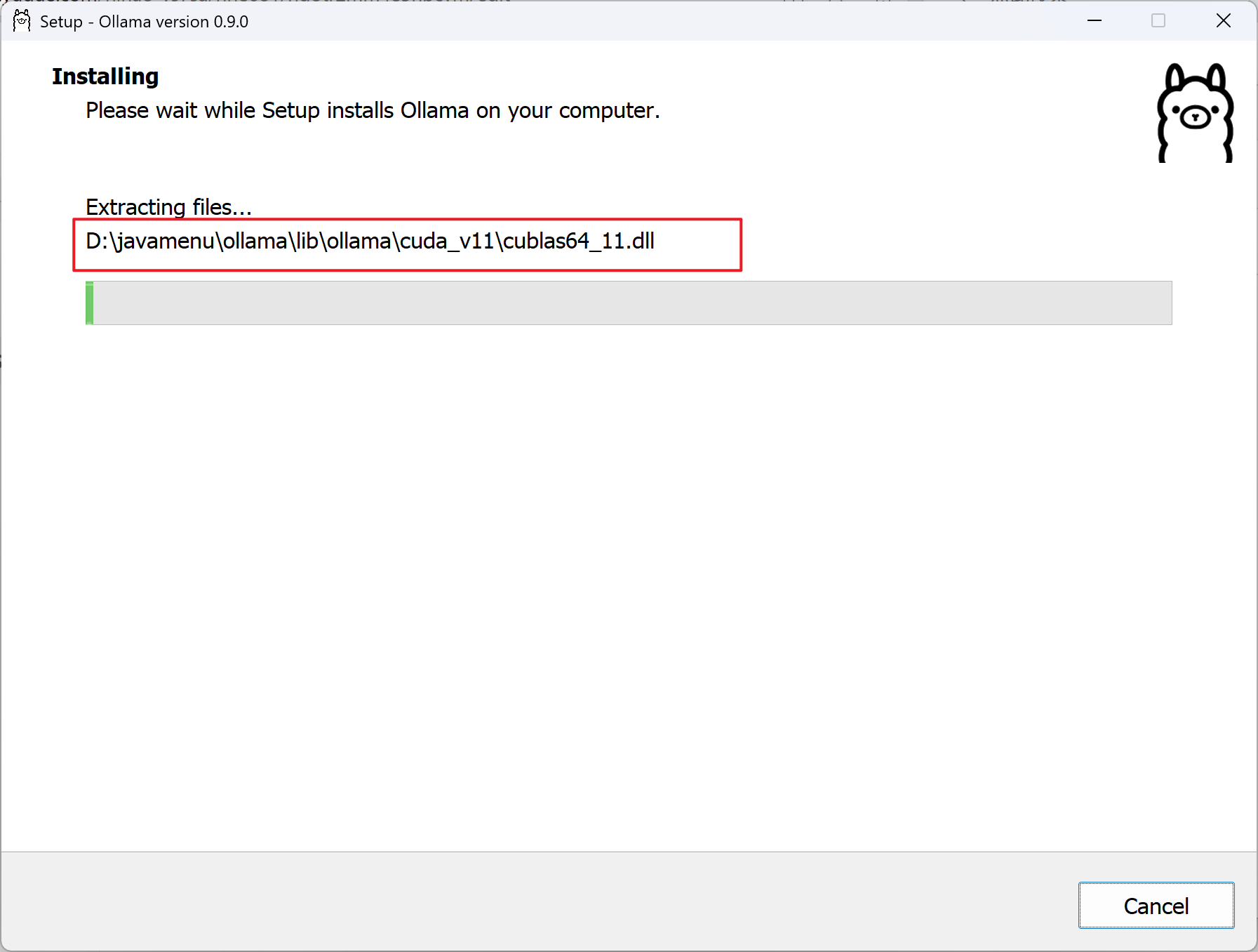 点击install进行安装,此时我们发现ollama不再是安装到默认的C盘位置,而是安装到我们指定的路径下面