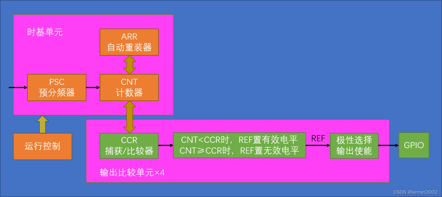 向上计数:CNT<CCR时,REF置无效电平,CNT≥CCR时,REF置有效电平 向下计数:CNT>CCR时,REF置有效电平,CNT≤CCR时,REF置无效电平 |