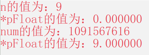 *pFloat = 9.0,9.0是以浮点数的形式存入的,二进制是1001.0 S=0,M=1.001,E=3+127(130)