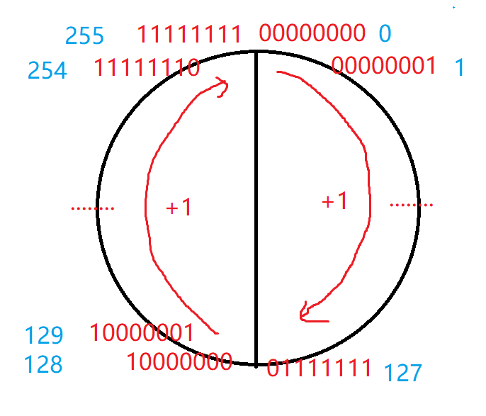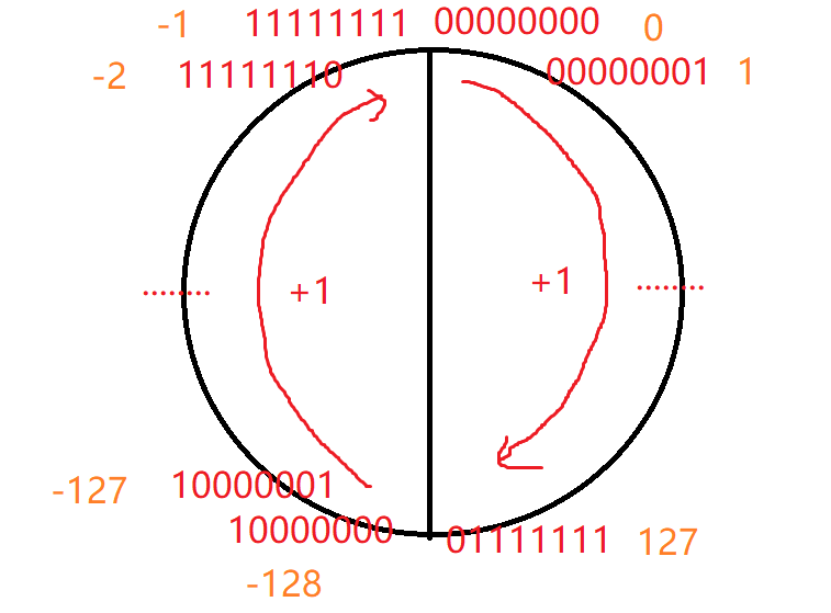 a[i]的变化:-1,-2,……,-128,127,……,1,0