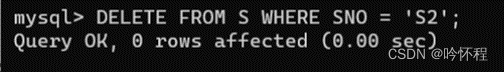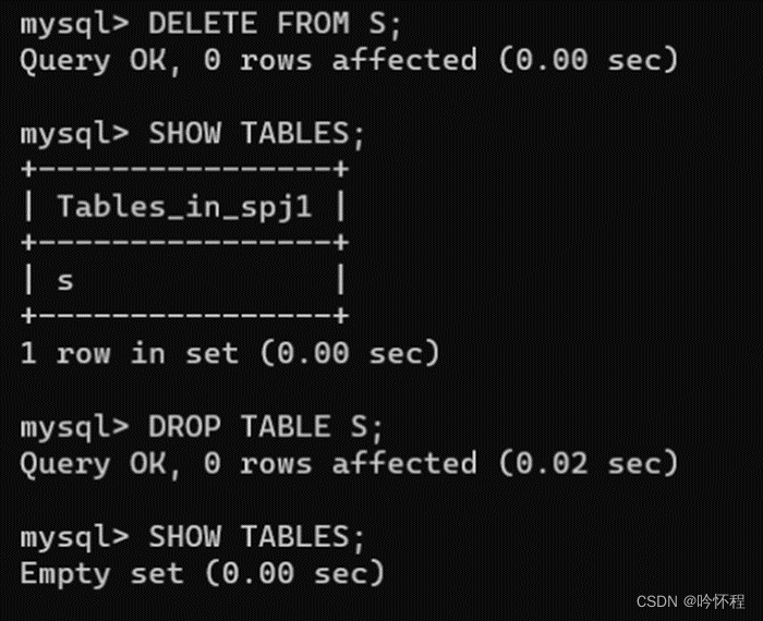 关于DELETE FROM S;只是从表 S 中删除数据,并不会删除表本身。执行该语句后,S 表中的所有数据将被删除,但表结构仍然保持不变。