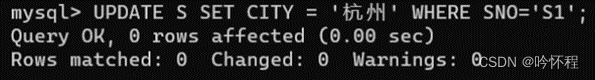 8、使用 SQL语句更新SPJ1库中S表中学号为供应商代码为S1的所在城市为“杭州”。