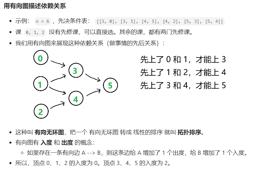综上:每门课的入度需要记录;课程之间的依赖关系也需要记录,即知道当前选课会减少哪些课程的入度。